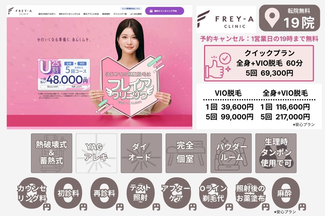 デビュープラン全身+VIO脱毛5回52,800円!脱毛専門大手の安定したサービスが魅力。 - フレイアクリニック 上野院